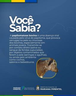 A incidência gradativa de casos atendidos pelo setor Veterinário da Secretaria de Agricultura e Saúde de Mariana Pimentel, envolvendo bovinos acometidos por verrugas (papilomas), vem acendendo um alerta.