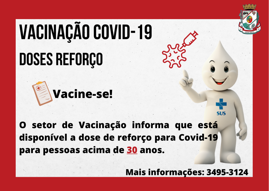 Atenção Comunidade Marianense! O setor de vacinação informa que estão disponíveis as doses de reforço para Vacinação contra Covid-19, faixa etária, 30 anos +.