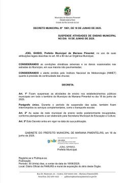 SUSPENDE ATIVIDADES DE ENSINO MUNICIPAL NO DIA 18 DE JUNHO DE 2025.