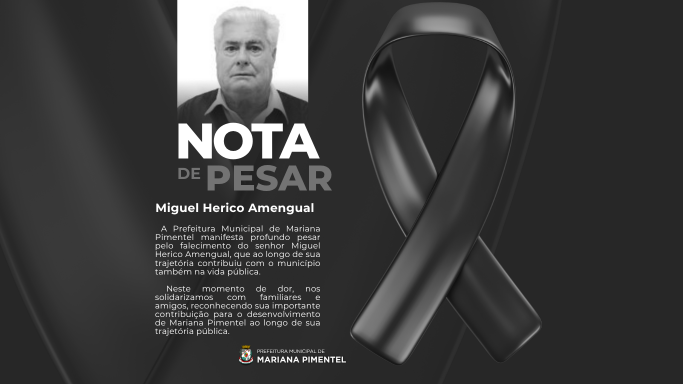 prefeitura MUNICIPAL DEA Prefeitura Municipal de Mariana Pimentel manifesta profundo pesar pelo falecimento do senhor Miguel Herico Amengual, cidadão que marcou sua trajetória com relevantes serviços prestados à comunidade marianense, especialmente na vida pública. Durante anos, Miguel Herico Amengual dedicou-se com sensibilidade e generosidade ao desenvolvimento coletivo do nosso município. Sempre esteve ao lado das pessoas que mais precisavam, ajudando inúmeras famílias e atuando com compromisso e empatia em tudo que fazia. Foi 2º Tesoureiro da Comissão Emancipacionista que trabalhou pela autonomia do município, em 1991. Posteriormente, exerceu com empenho o cargo de Vereador na legislatura de 1993 a 1996 e, na sequência, foi eleito Prefeito Municipal de Mariana Pimentel, atuando entre 1997 e 2000. Em 2013, também esteve à frente da Secretaria Municipal de Obras, contribuindo com melhorias importantes para a cidade. Neste momento de despedida, nos solidarizamos com os familiares e amigos. Agradecemos pelo seu trabalho e dedicação incansável, bem como por todo seu carinho e respeito.