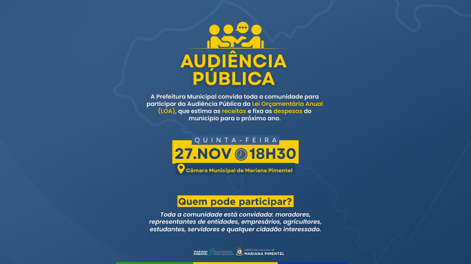Participe no dia 27 de novembro, às 18h30, na Câmara Municipal de Mariana Pimentel.